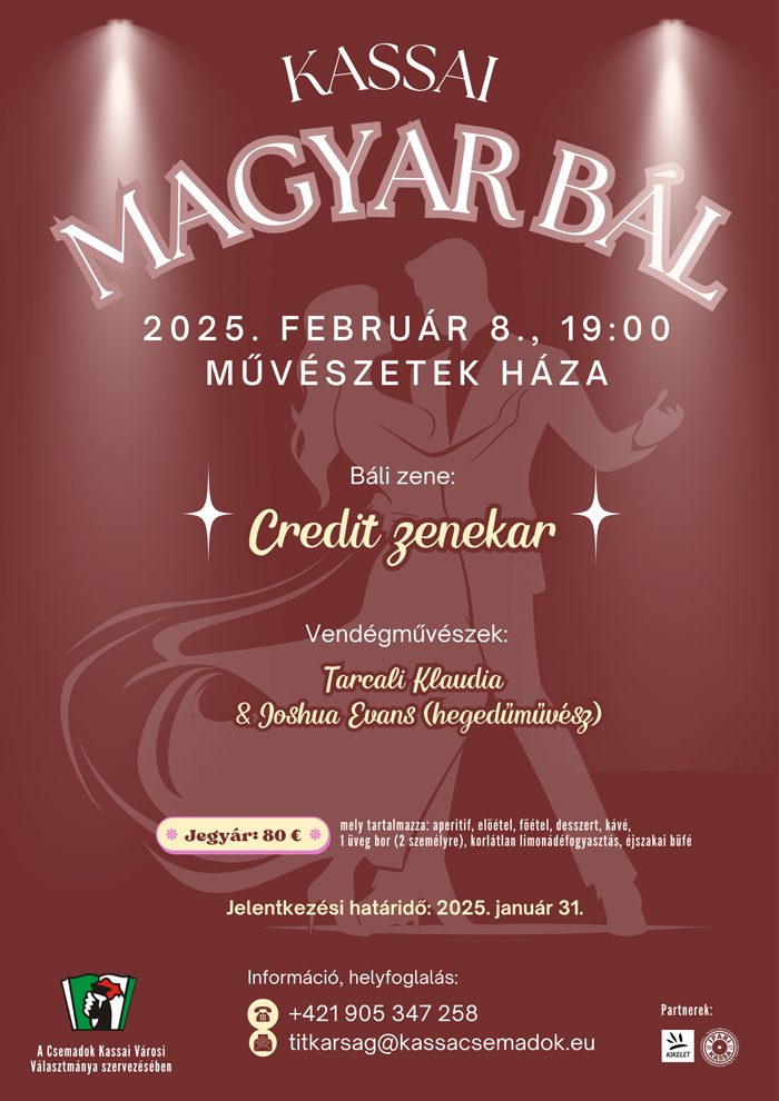 A Csemadok Kassai Városi Választmánya szeretettel meghívja Önöket a hagyományos Kassai Magyar Bálba, amelyet 2025. február 8-án szerveznek a Művészetek Házában.