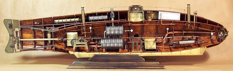 Az Ictineo I utánzata a Museu Marítim de Barcelona épülete előtt