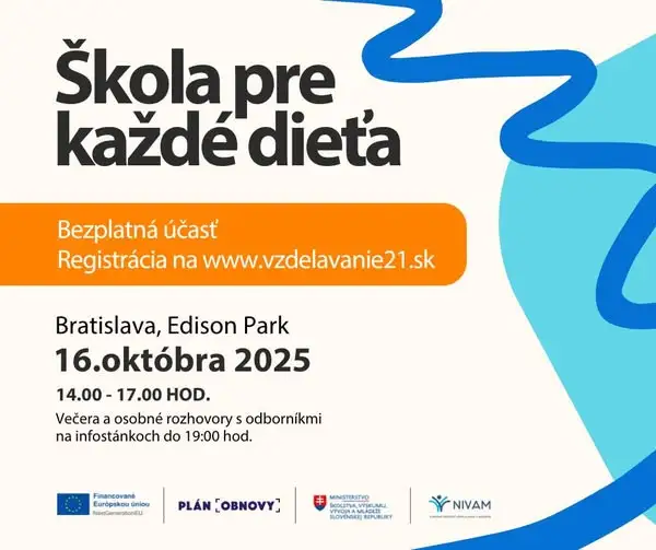 Kedves szülők, a szlovákiai Nemzeti Oktatási és Ifjúsági Intézet (NIVaM) szeretettel meghívja Önöket a „Iskola minden gyermek számára” rendezvényre. Megismerhetik, hogyan nézhet ki a modern oktatás a különböző igényű, más környezetből származó vagy egészségügyi hátrányokkal küzdő gyermekek számára.